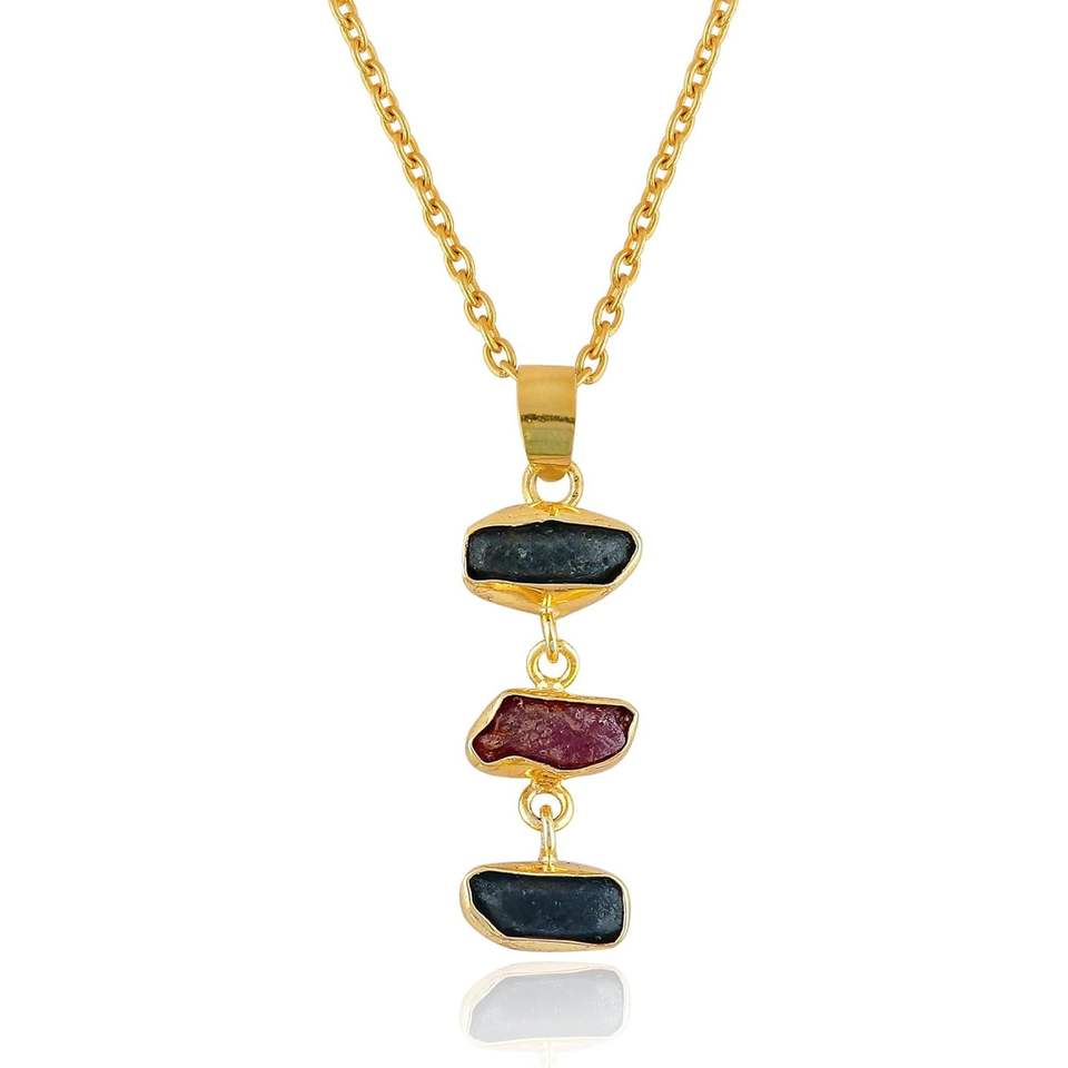 YASHEE Natural Sapphire And Ruby Rough Pendant Necklace Bezel Set Raw Gemstone Chakra Healing Unisex Jewelry