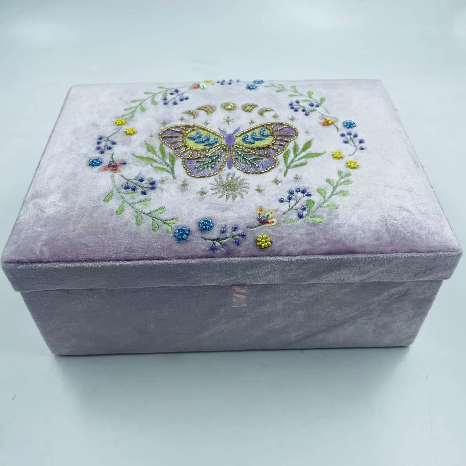 YASHVI EXPORTS Butterfly Design Custom Velvet Fabric Big Size Jewelry Organizer Embroidery Beading for Rings Necklaces