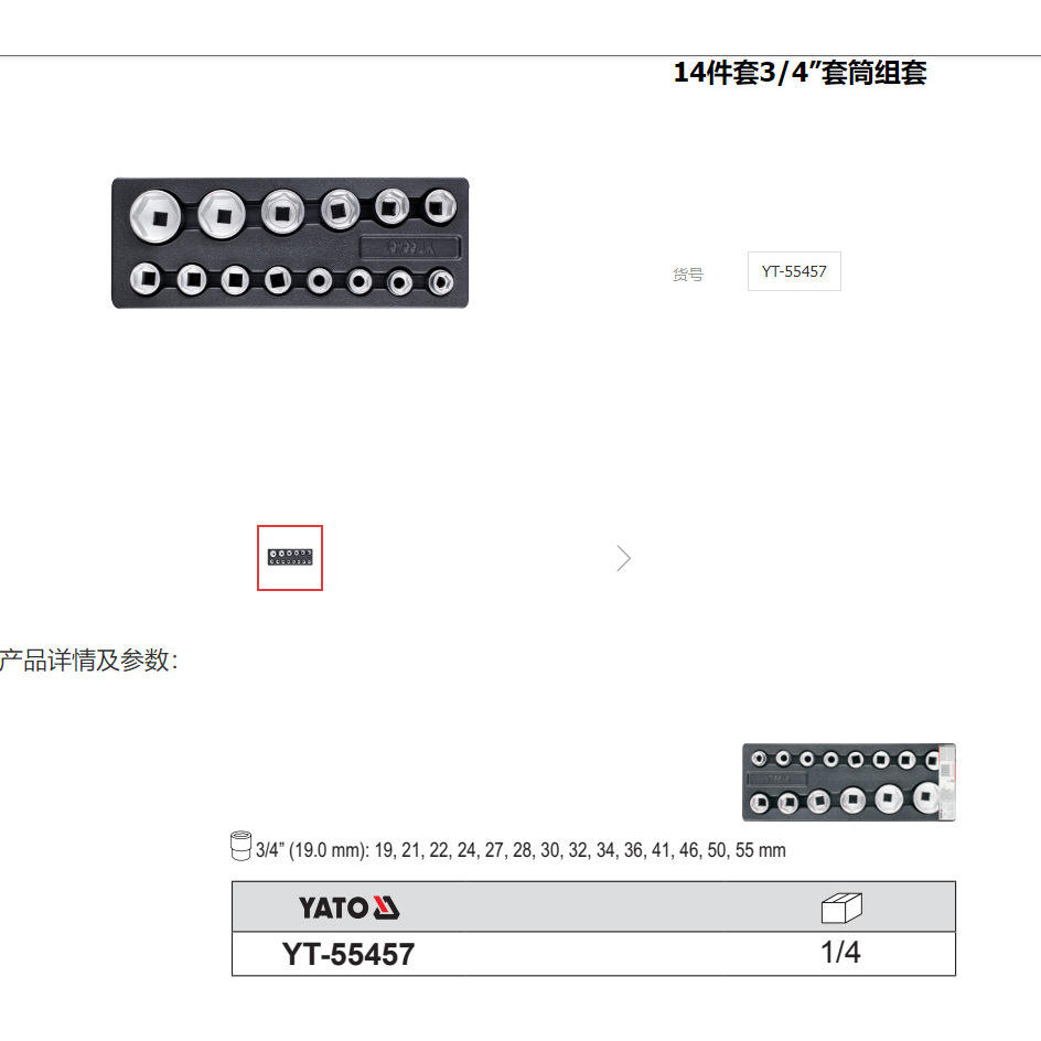 YATO 3/4 In Socket Set 14 Piece Hex Industrial Grade Chromium Vanadium Steel Mechanic Tool YT-55457