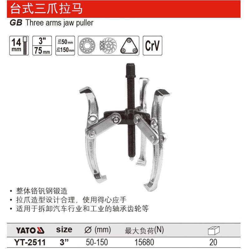 YATO Three Jaw Puller 3 In 50-150mm Industrial Grade For Bearing Gear Removal