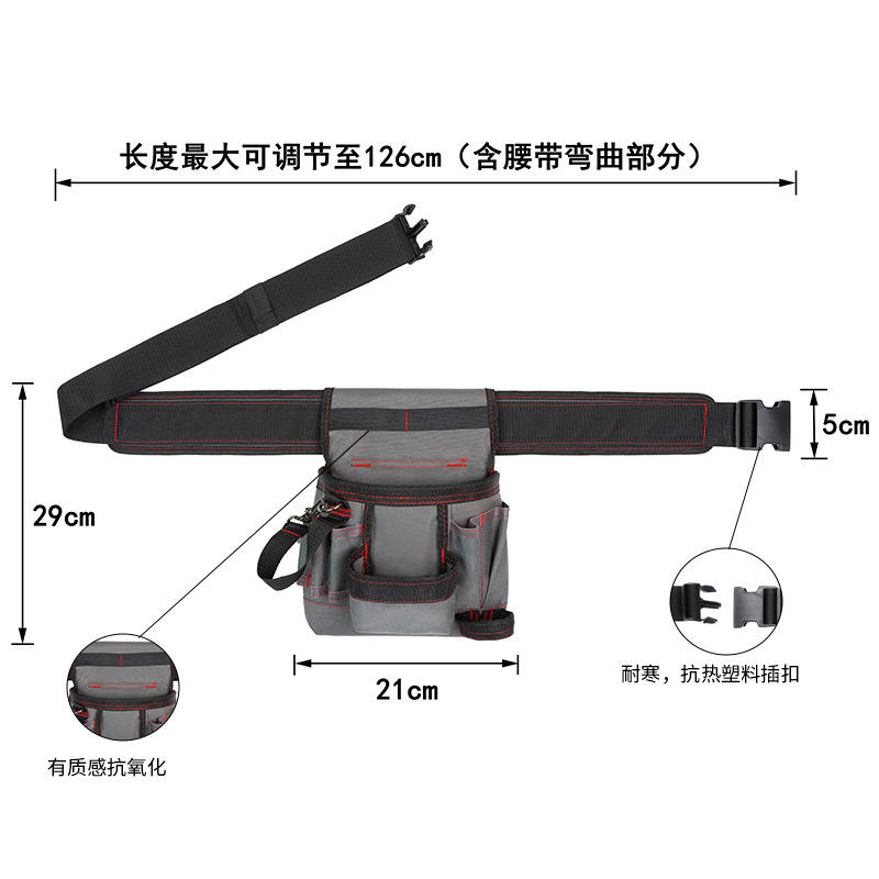YB-012 Tool Waist Bag 15-19 Pockets Adjustable Strap Buckle Closure Multi Functional Crossbody Tool Bag