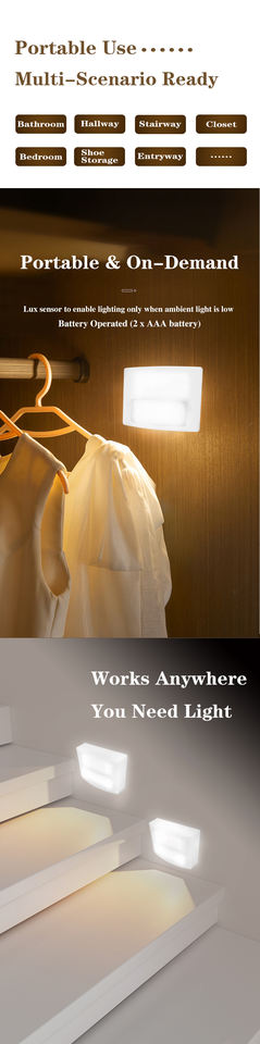YD-105 Modern LED Plastic Shade Night Light Motion Sensor 2X AAA Battery Stairway 3-Year Battery Life Living Room Dimmable