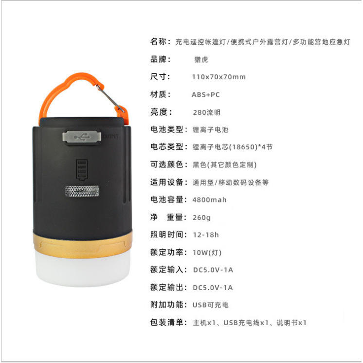 YD-29 Outdoor LED Camping Lantern USB Rechargeable Remote Control Waterproof Magnetic Hanging Light