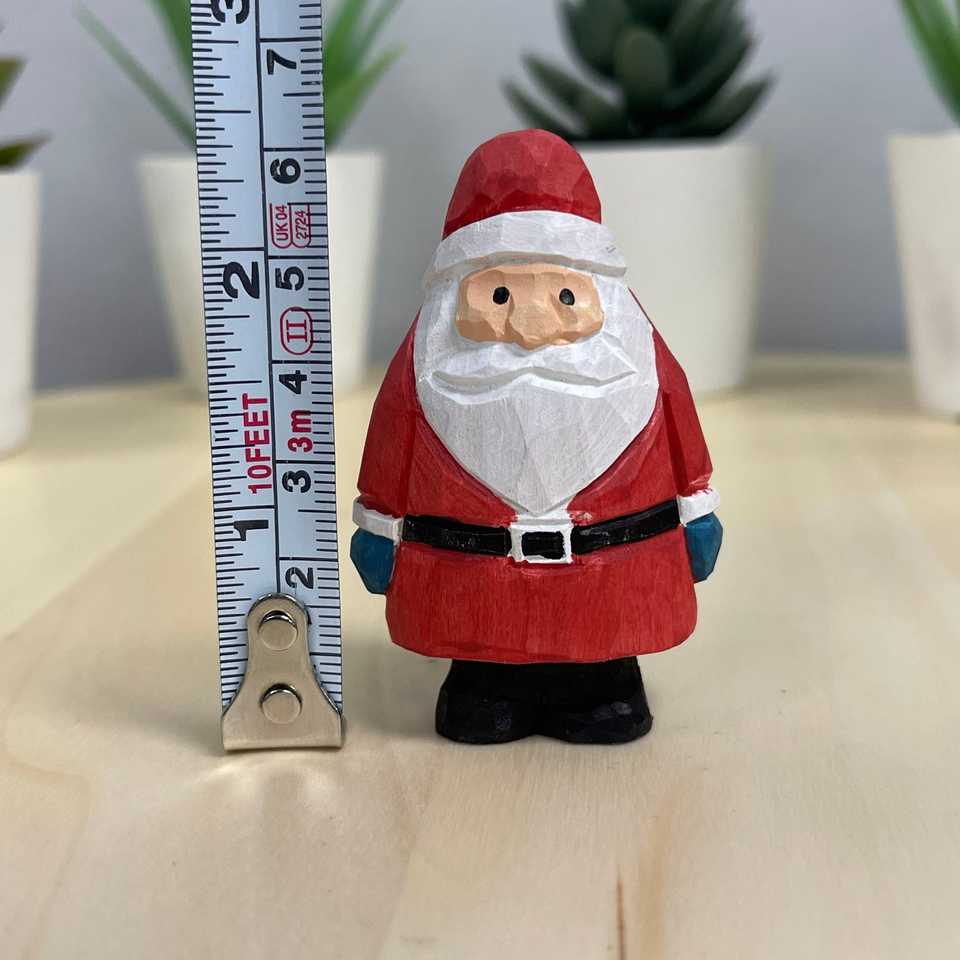 YEEYAYA 4 PCS Wood Sculpture Santa Sets Hand Carved Wooden Santa Claus Figurine for Home Decor and Christmas Gift