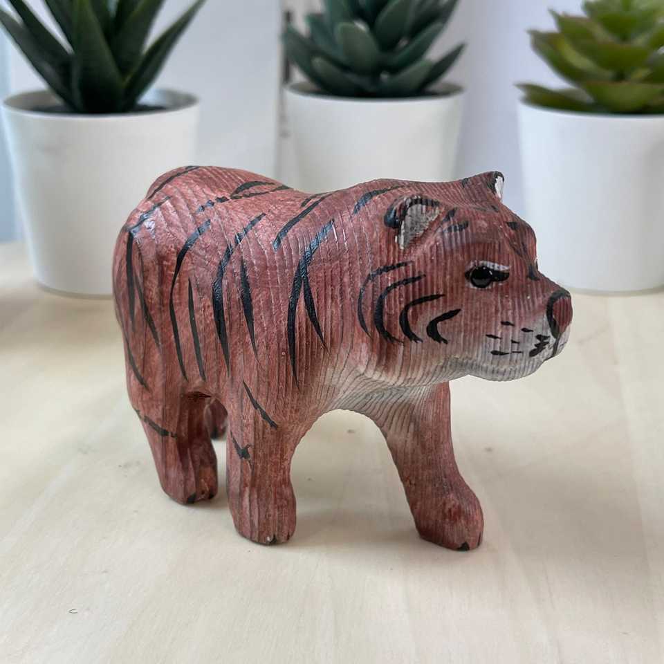 YEEYAYA Hand Carved Tiger Wood Statue Plant Pattern Home Decor Wood Figurines Wild Animals Zoo Christmas Gift