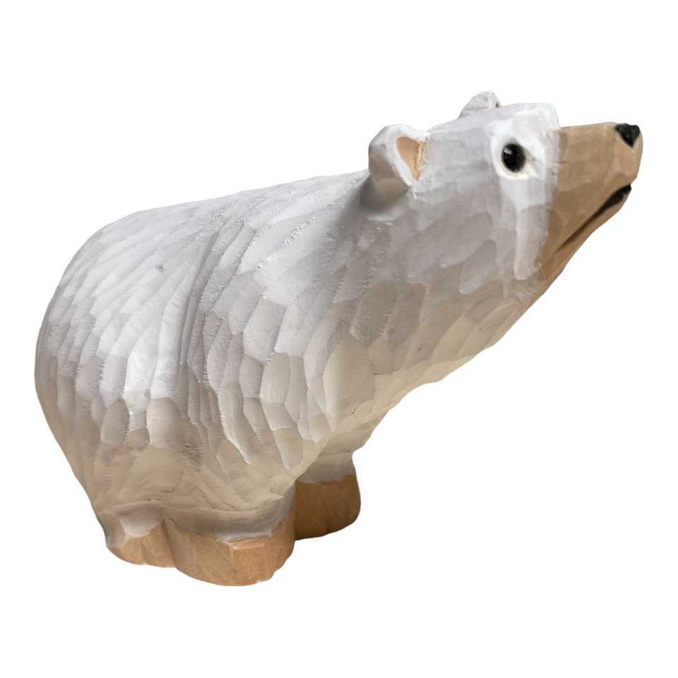 YEEYAYA Hand Carved Wood Polar Bear Statue Home Decor Wood Sculpture & Room Decor Wild Arctic Animals Christmas Figurines & Toys