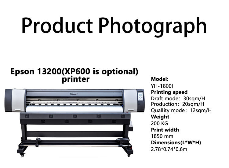 YH Factory 1800I Digital Large Format Printer I3200 Head Inkjet Eco Solvent Printer Banners Tarpaulin Vinyls Printing Machine