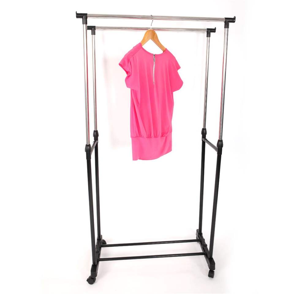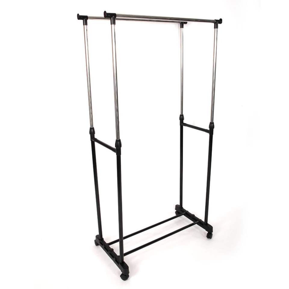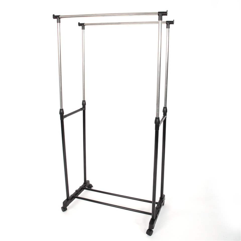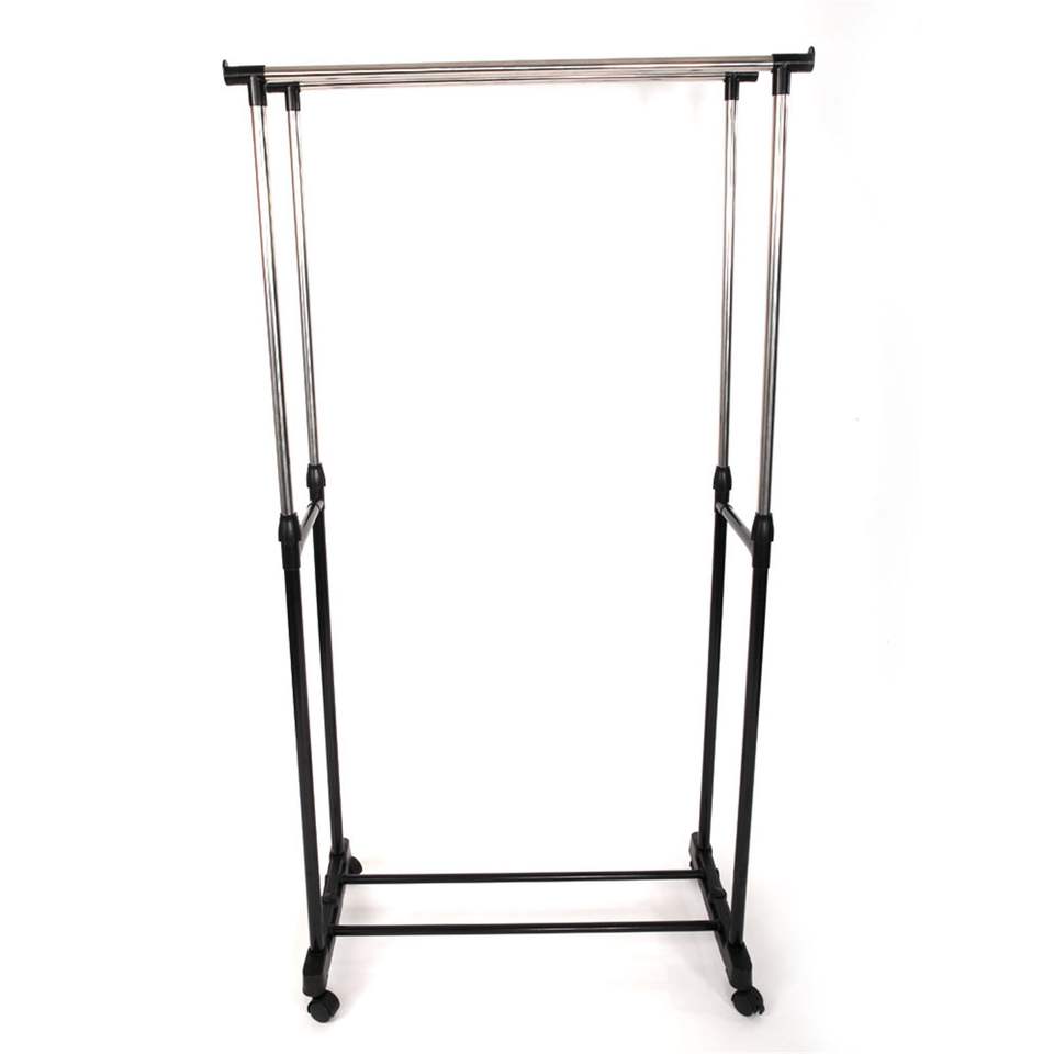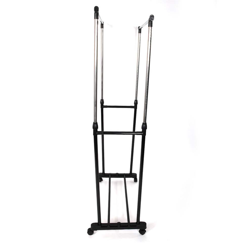 YJ 03 Over Door Rack with Dual Bar Black and Silver Vertical & Horizontal Stretching Stand Includes Shoe Shelf
