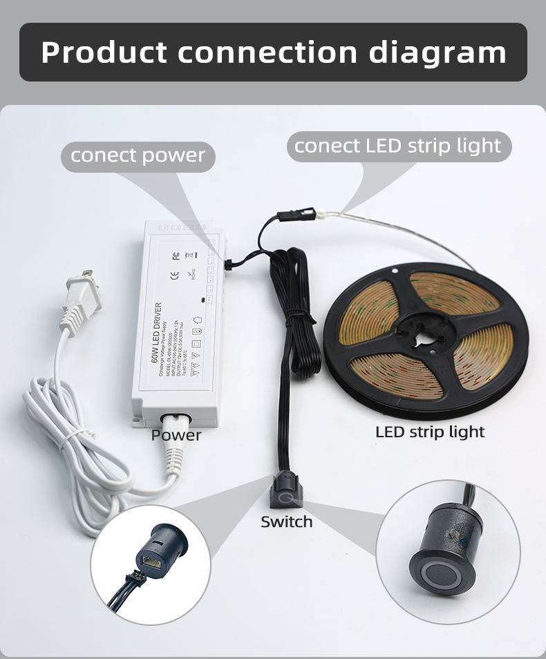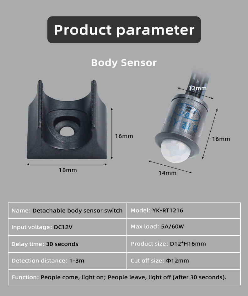 HCZLUX YK-CM1216 Cabinet Sensor Switch 12V 5A Auto On/Off Touch Control for Wardrobes & Cabinets 2-Year Warranty