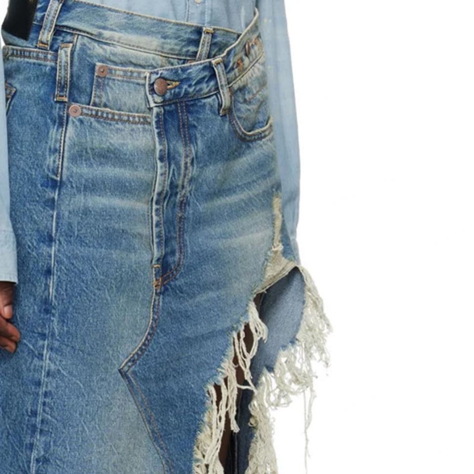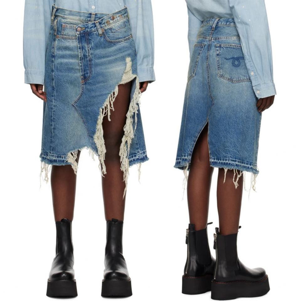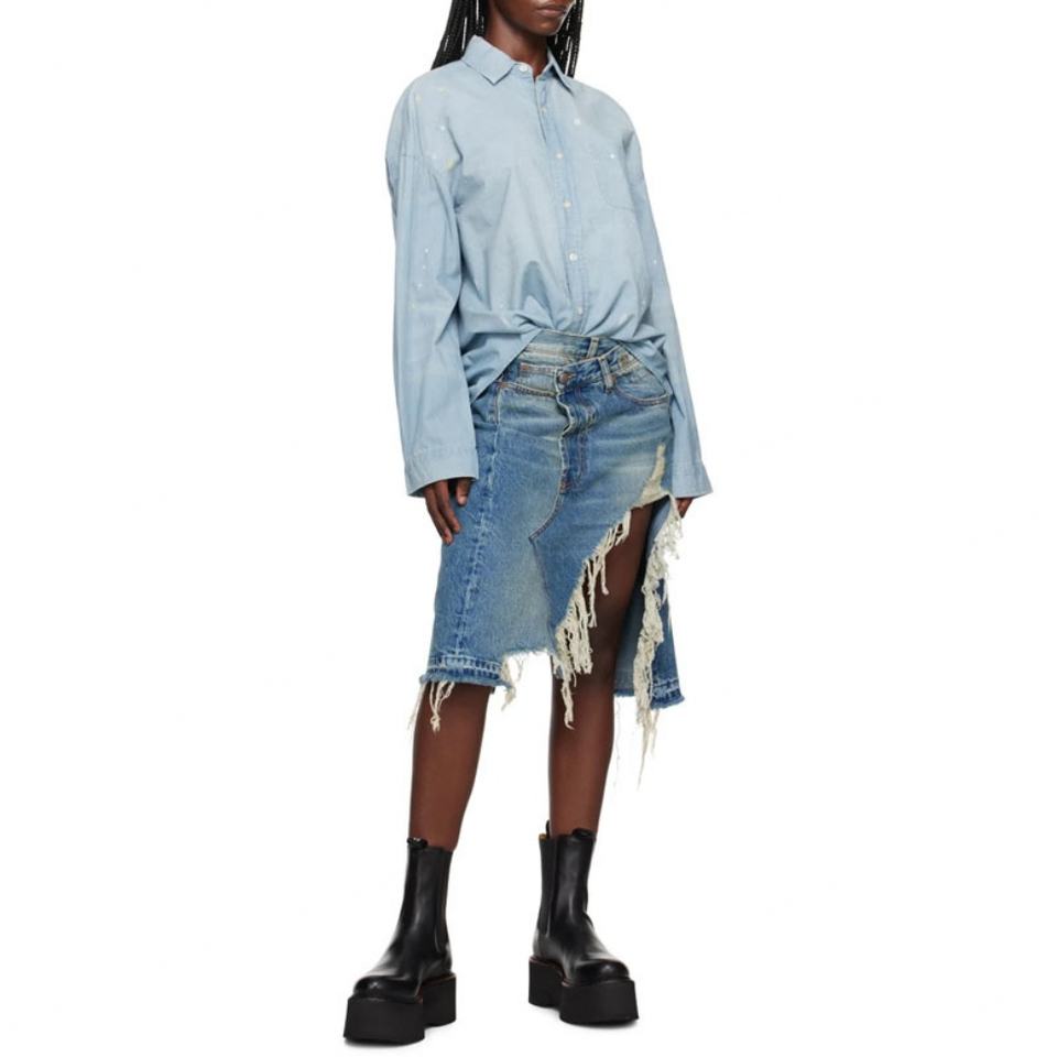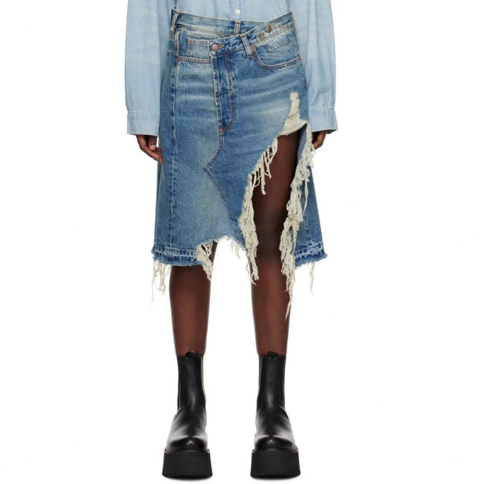 YK2 Style Blue Washed Denim Miniskirt Non-stretch Distressing Throughout Women's Denim Skirts