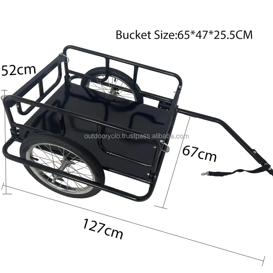 YOLO Bike Cargo Trailer Luggage Storage Cart Carrier with Removable Transportation Box Cover Max Payload 150KG Size 130x68x45cm