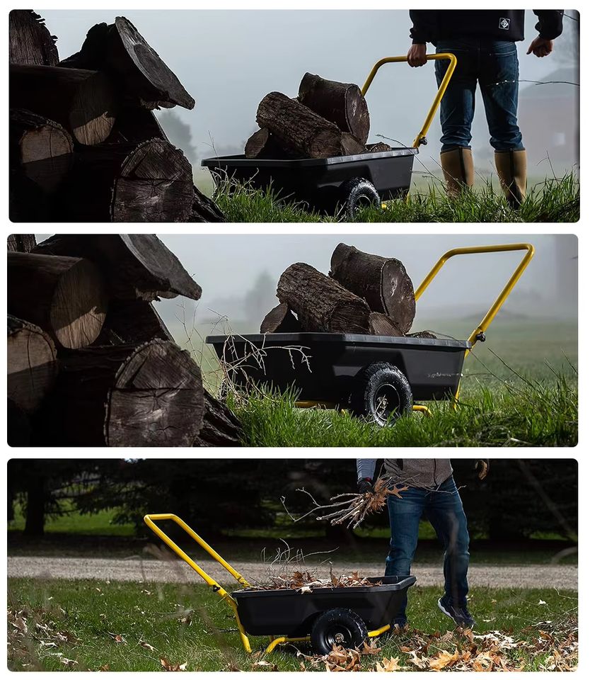 YOLO CT1012 Innovative 2-Wheel Bike Trailers Garden Wagon with 150KG Capacity Poly Dump Cart and Foldable Handle