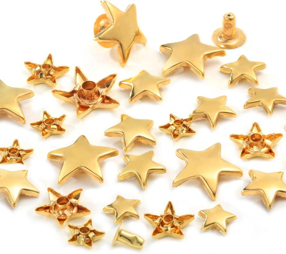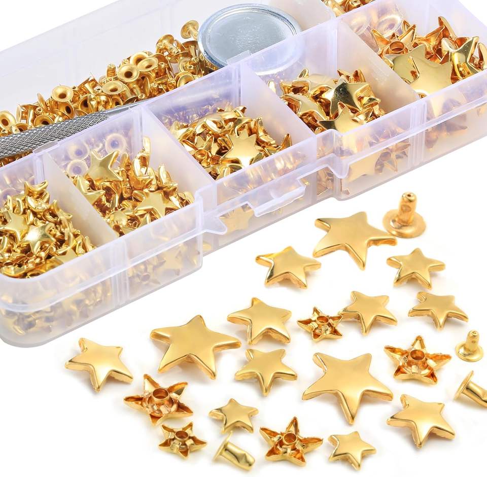 YORANYO Set Mixed Size Leather Rivets Kit For Star Studs Clothing Fabric Gold Color Crafting Repair Decorate Jackets Shoes Bags