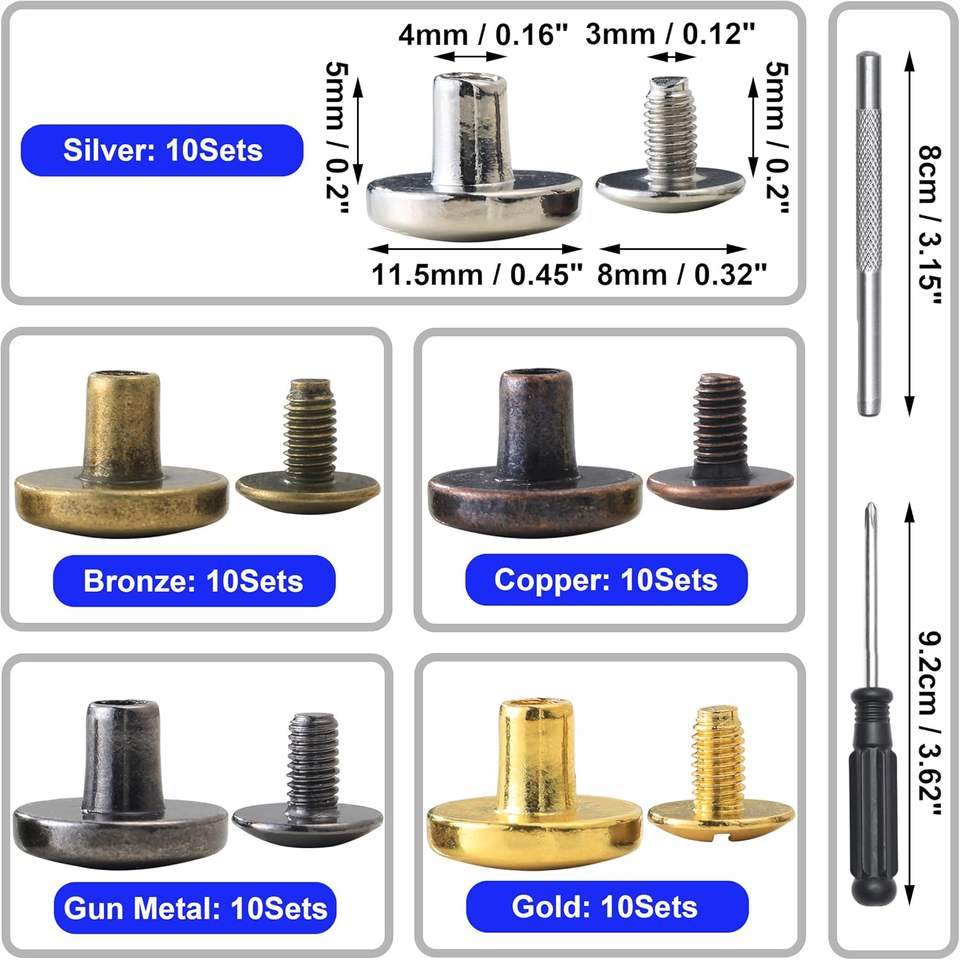 YORANYO Sets Chicago Screws Leather Rivets Assorted Screw Rivets Metal Studs For Clothing Chicago Binding Screws Spike And Studs