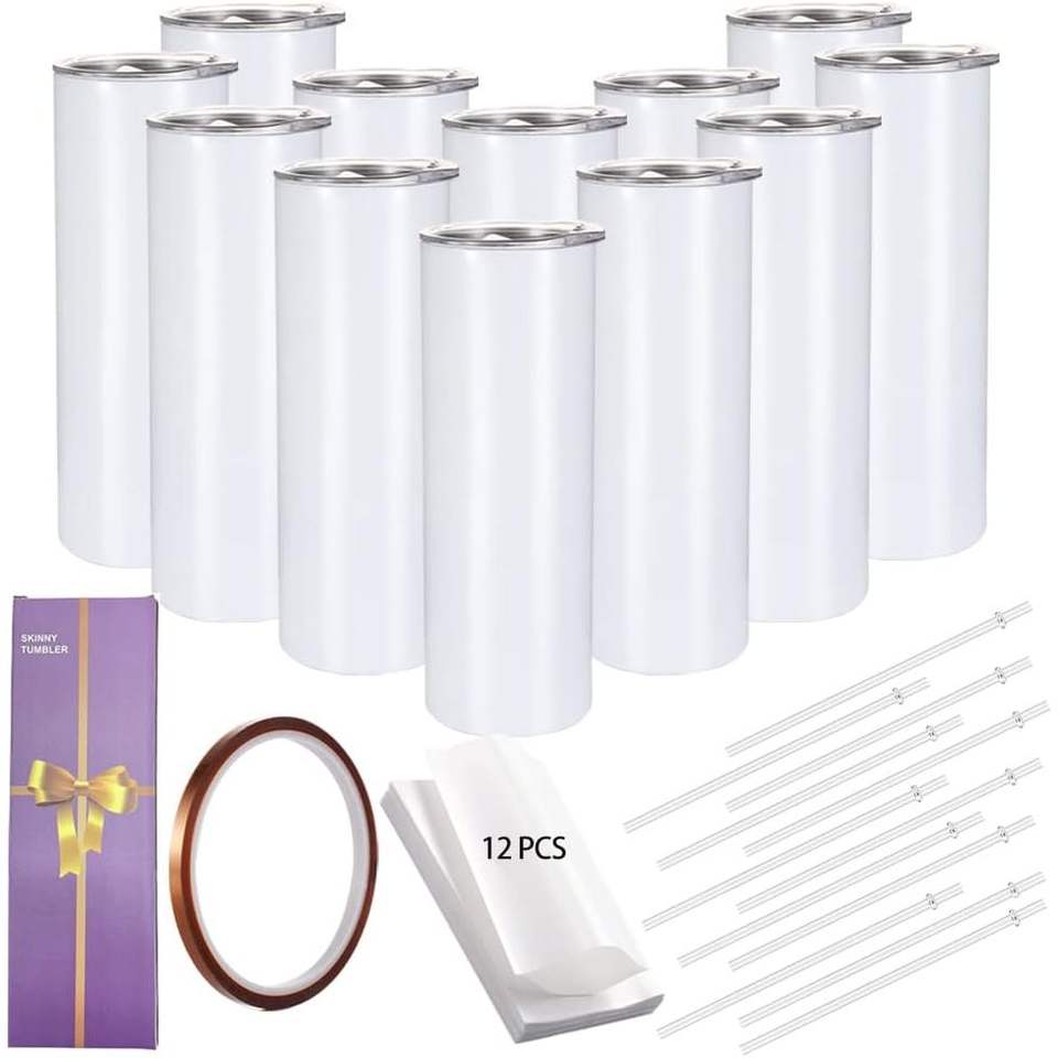 T Tryme 20oz Stainless Steel Tumbler Vacuum Insulated Reusable White With Lid Straw BPA Free Portable Home Office Use