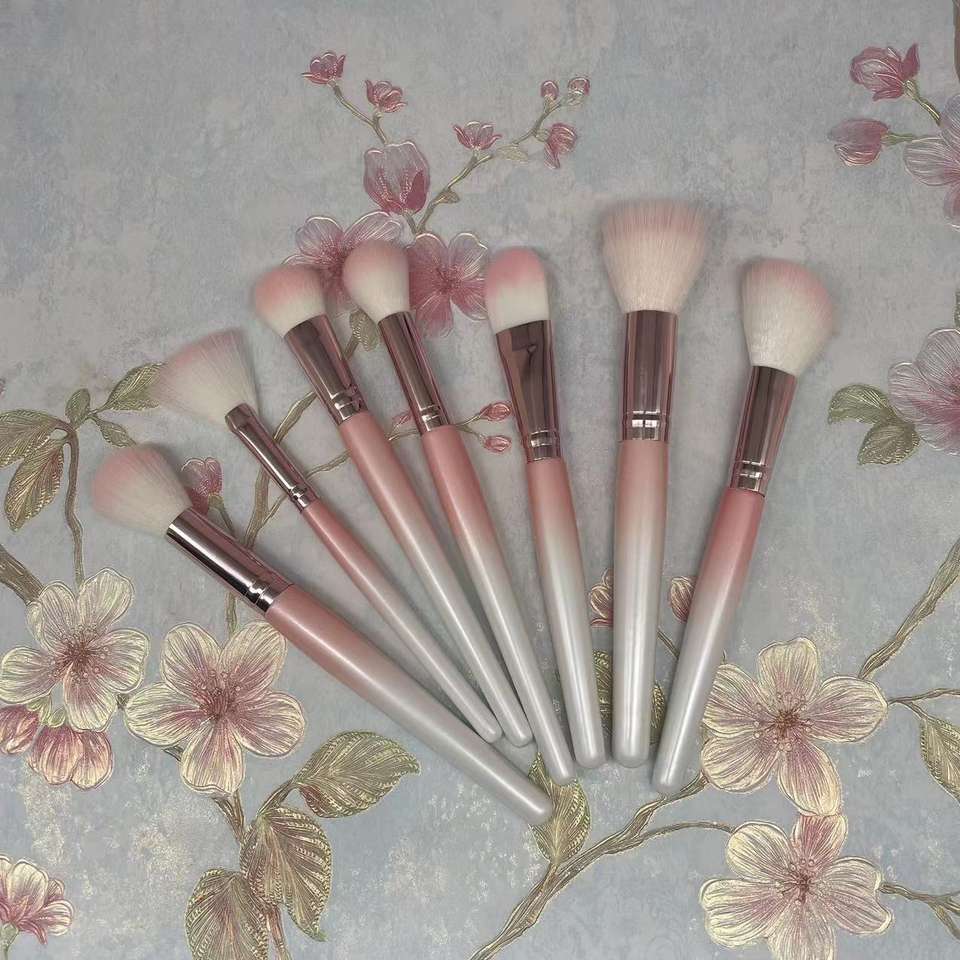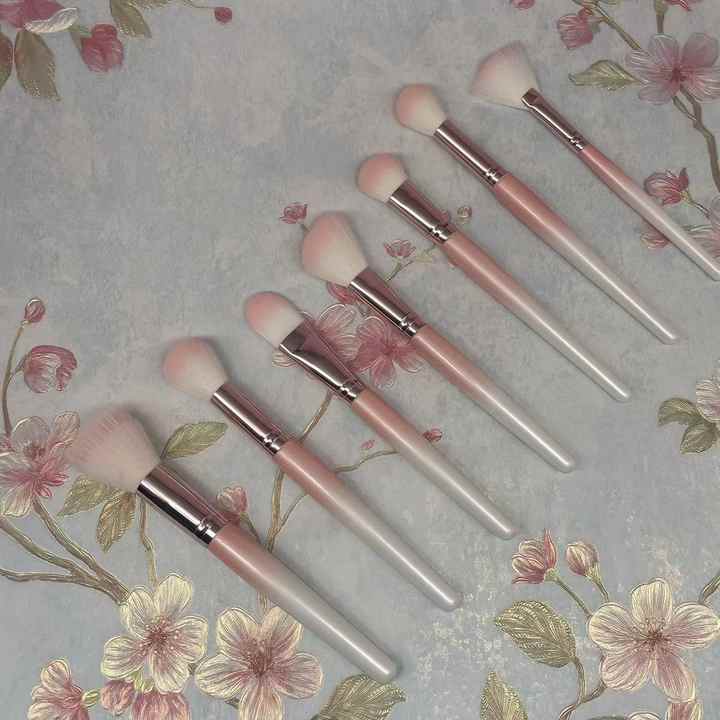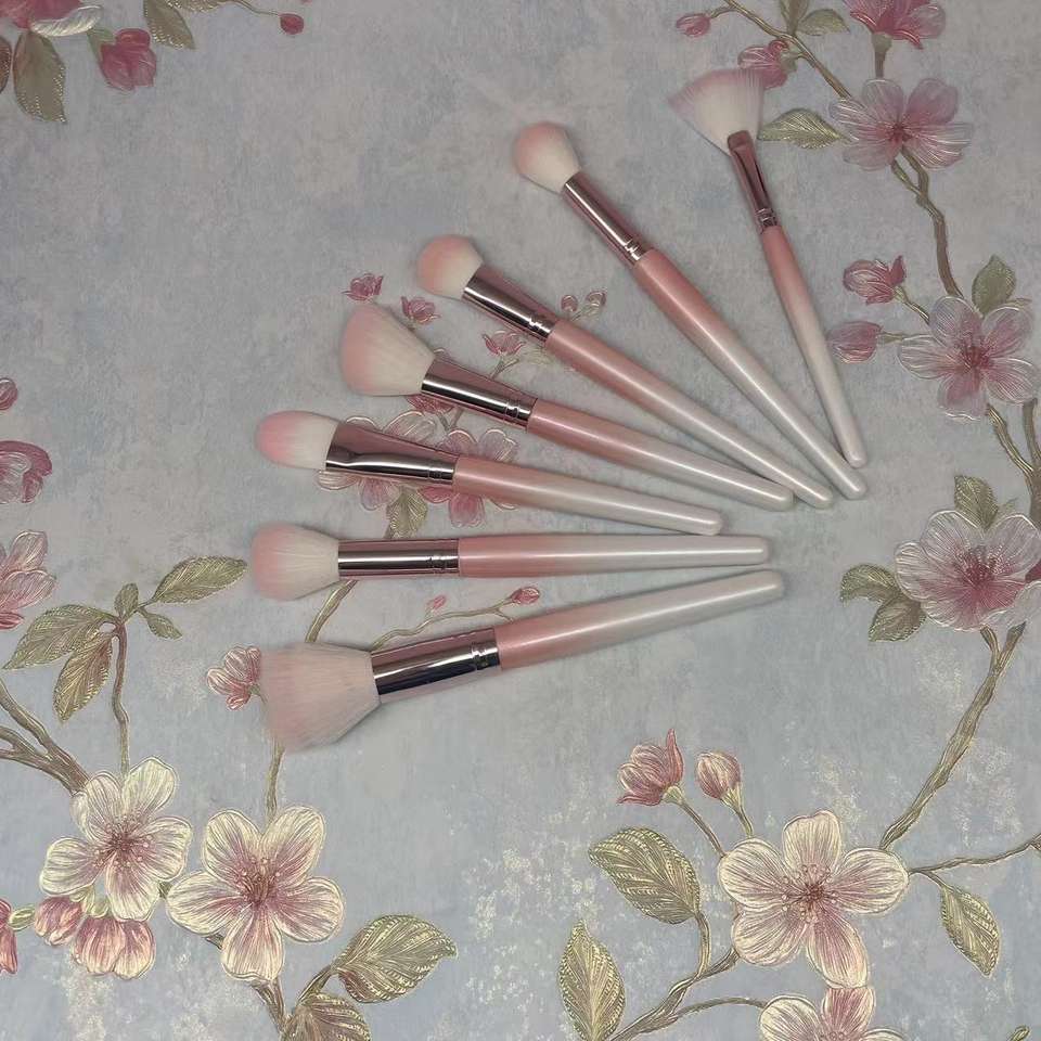 YRX Pink Gradient 7pcs Professional Use Makeup Brush Set Soft Luxury Synthetic Hair Wood Handle Aluminum Ferrule Women Brush