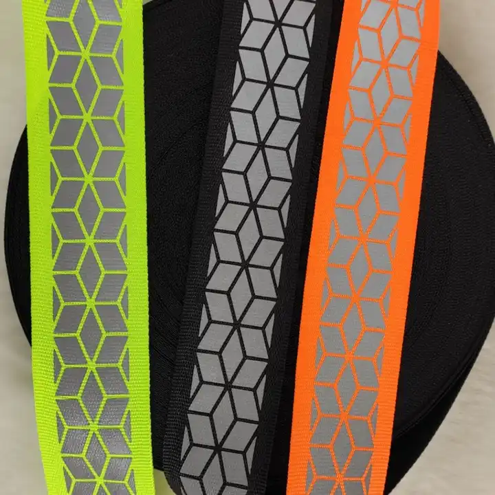 YS Zhejiang Black/Green/Orange Reflective Polyester Webbing Ribbon Sew-On Fabric Tape Trim Strip for Clothing & DIY Crafts