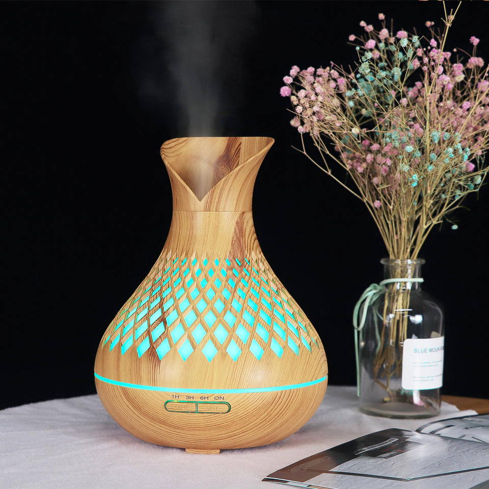 YX-034G Wood Grain Essential Oil Diffuser 500ml Grid Design Quiet Humidifier for Home Use