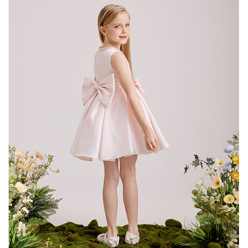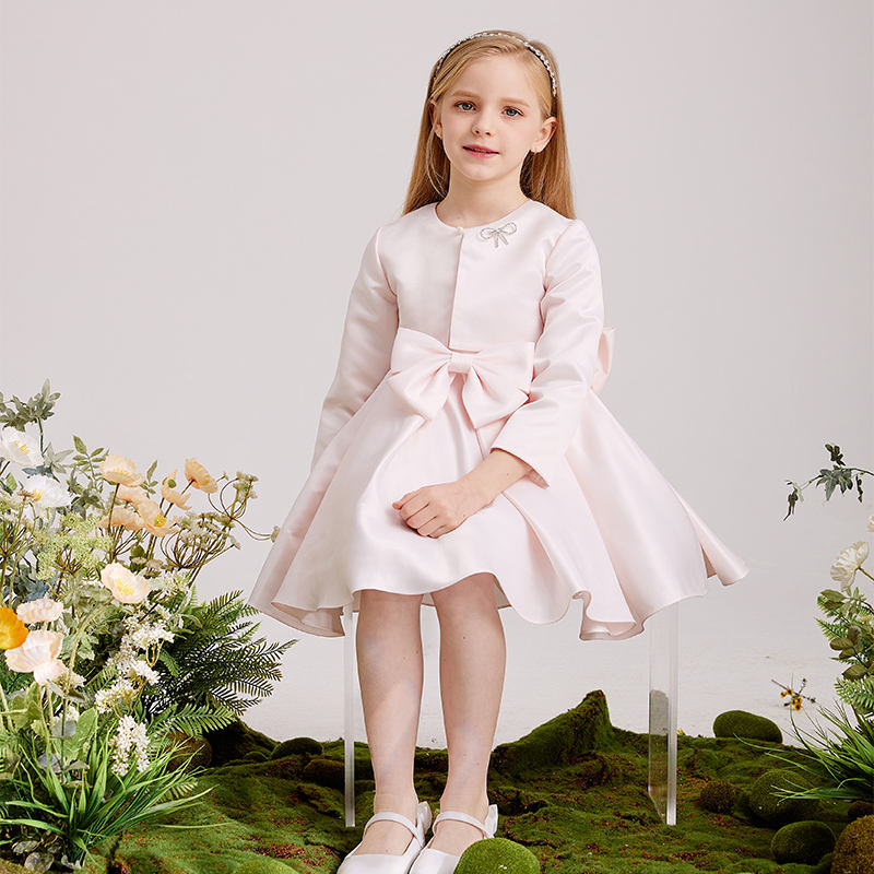 Yalindars Junior Kids Clothing Knee Length Pink Prom Satin Dress Child 12 Year Old Girl Wedding Party Dress Match Coat