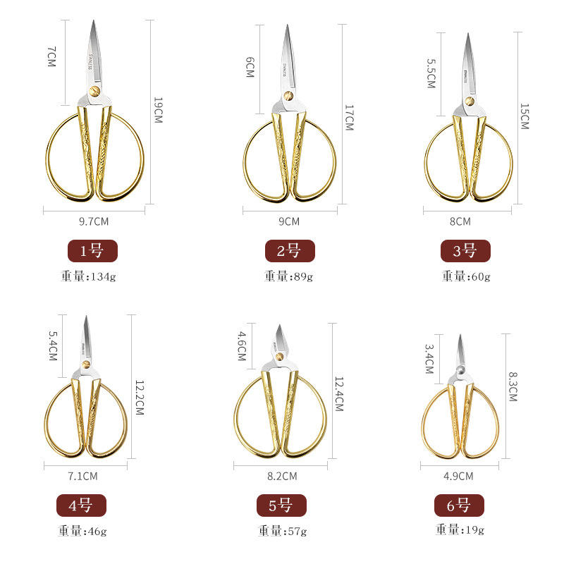 Yangjiang Alloy Dragon Phoenix Scissors Gold Straight Head Stainless Steel Home Office Wedding Ribbon Cutting Scissors 6 Sizes