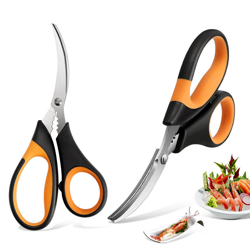 Yangjiang Stainless Steel Seafood Scissors 18cm Heavy Duty Kitchen Shrimp Crab Lobster Cutter Orange Black Handle