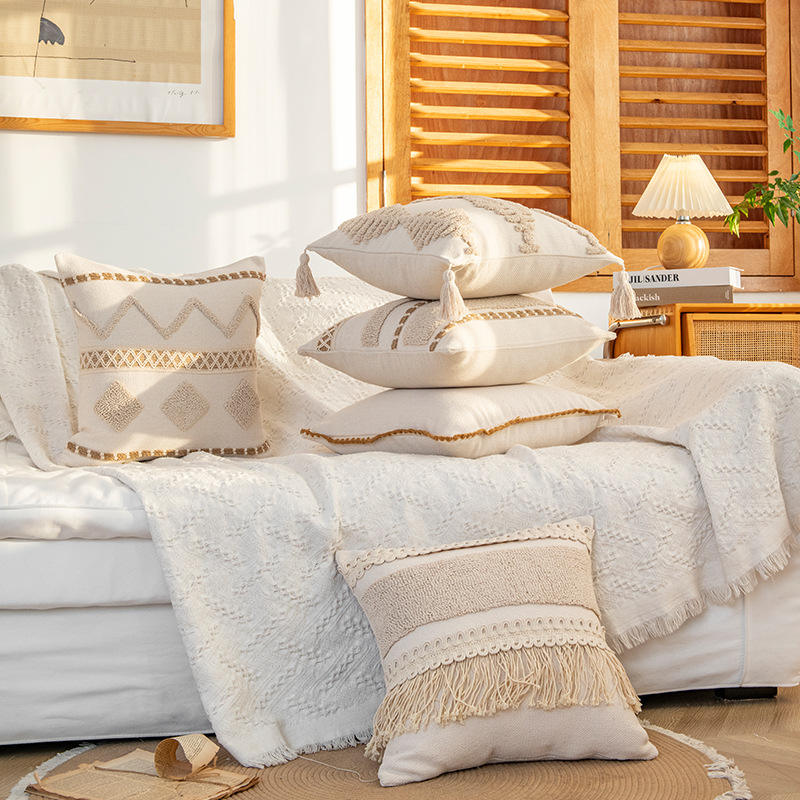 Yanxuan Bohemian Hand-Woven Pillowcase Rectangle Cotton Linen Abstract Geometric Pattern Home Sofa Cushion Cover