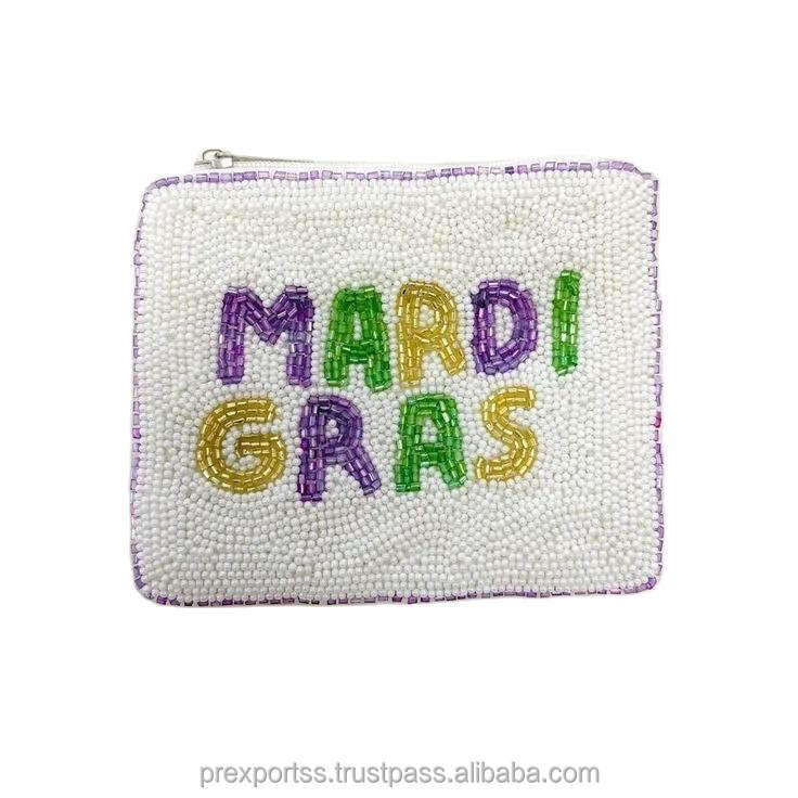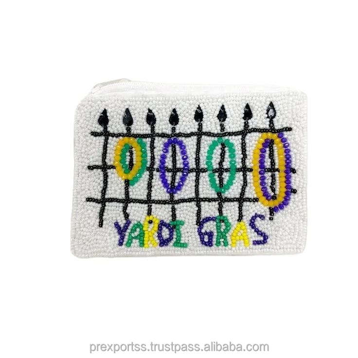 Yardi Gras Handmade Beaded Coin Purse Large Capacity Fence Design Letter Embroidery Zipper Pouch Custom Festival Party Favor
