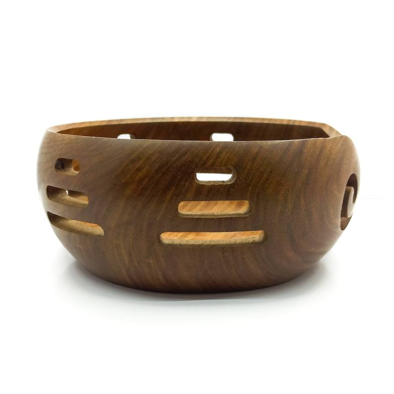 Yarn Storage Bowl with Carved Window Natural Wood Knitting Crochet 7X 3 Inch Antique and Modern