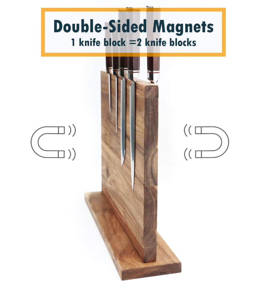 Yashion Acacia Wood Double-Sided Magnetic Knife Block With Sharpener & Roll Bags New Kitchen Storage Stand