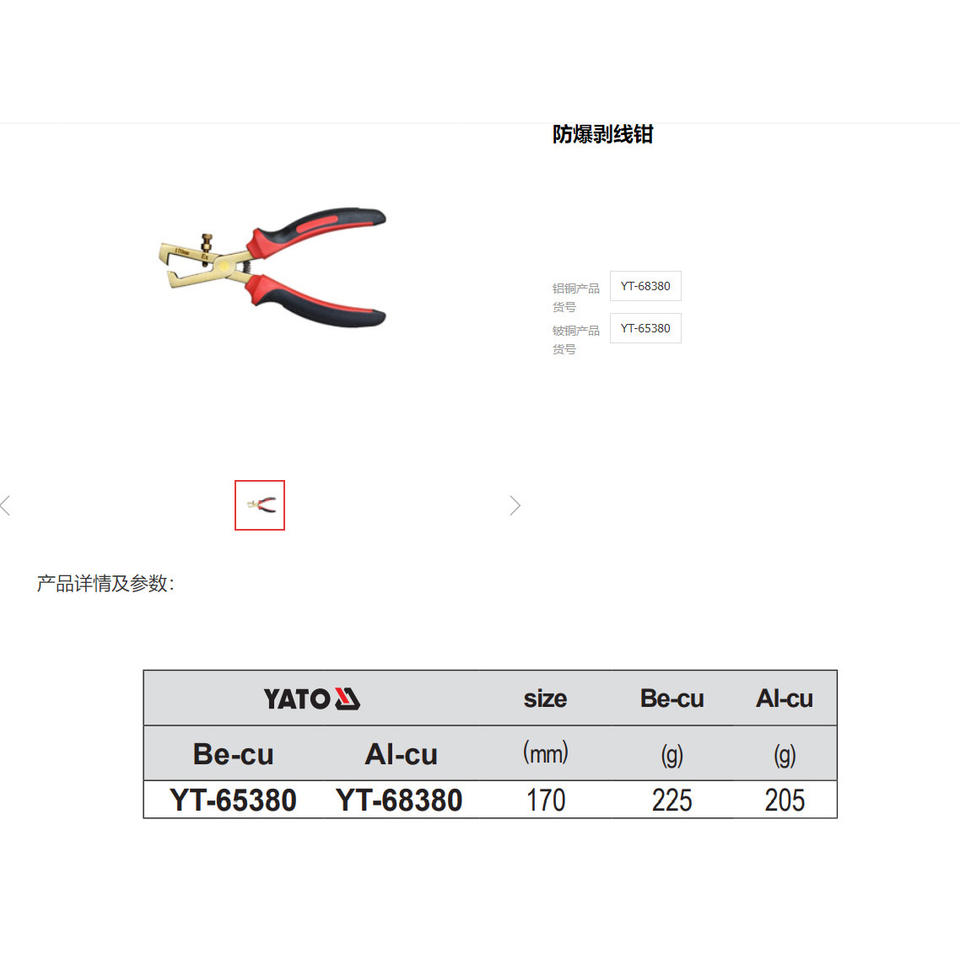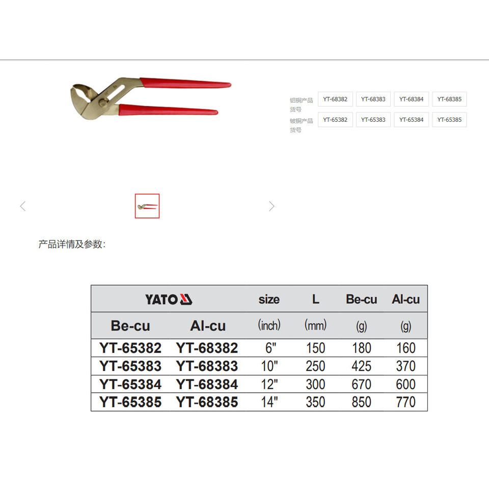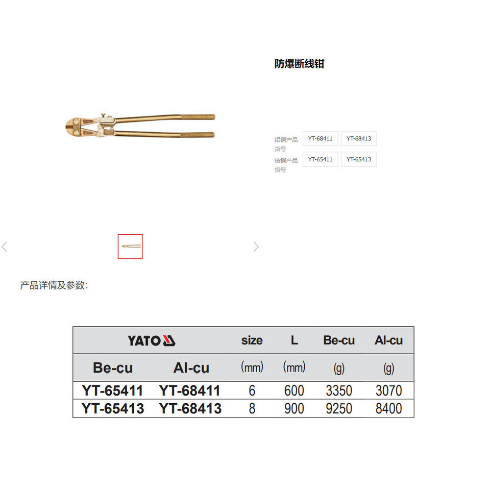 Yato Explosion-proof Pliers 6 Inch Beryllium Copper Industrial Wire Cutters