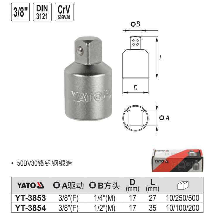 Yato Socket Adapter 1/4 In Ball Hex Chrome Plated For Automotive Repair