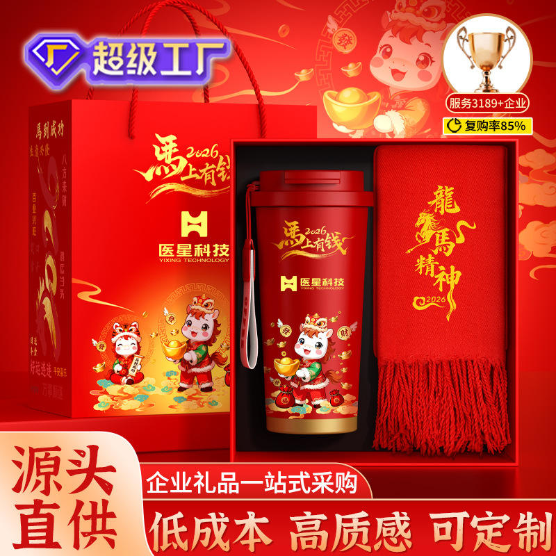 Year of the Horse Gift Set 316 Stainless Steel Thermos Scarf Personalized Customized Corporate New Year Present for Employees