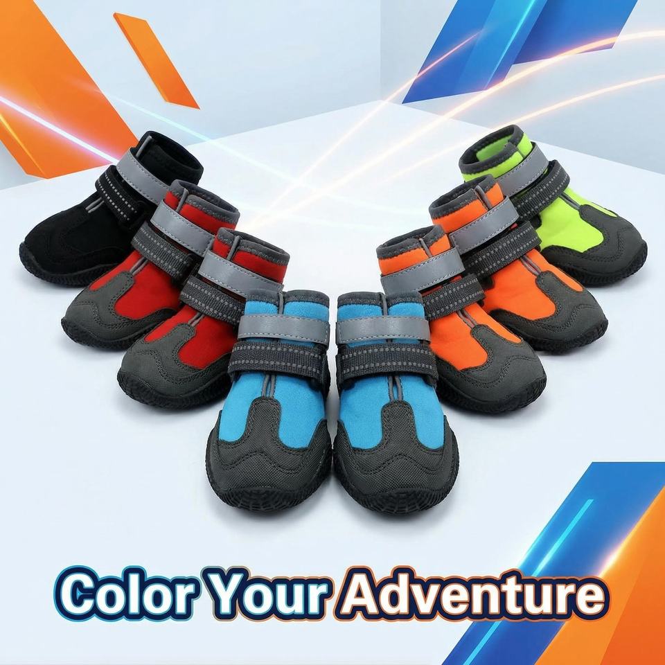 Yearning Dog Soft sole Breathable Plush Fabric Rubber Waterproof Non-Slip Rain Boots for Dogs Outdoor(four pieces of a set)