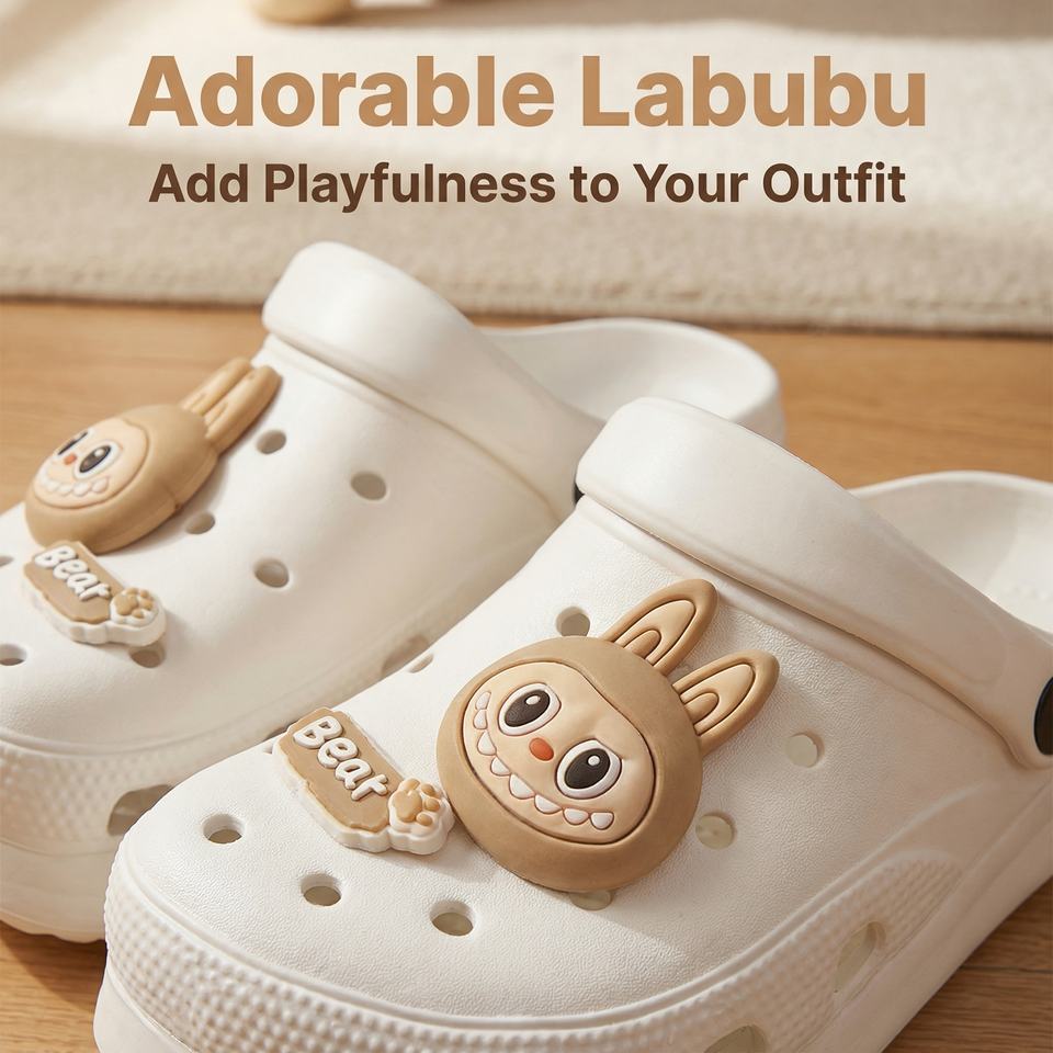Yearning Woman labubu Mid Top Holes Hole-Patterned Slippers Soft Comfortable Korean Style Air Cushion Waterproof Outdoor/Indoor
