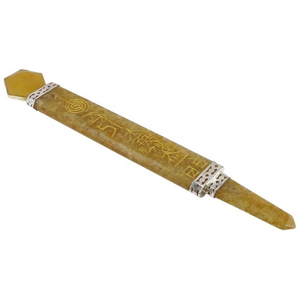Yellow Aventurine Stone Crystal Flat Healing Wand Hand Engraved Natural Stone Wand Energy Gemstone Point