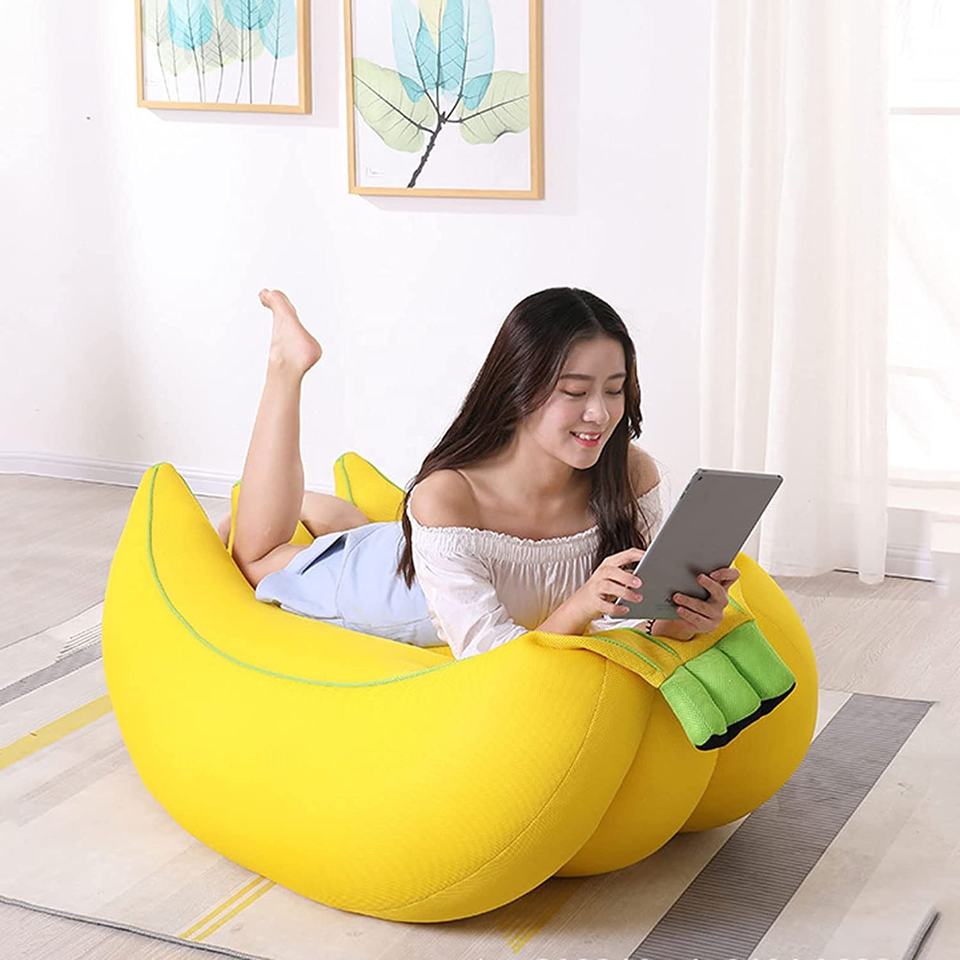 Modern Custom Color Banana Ship Shaped Bean Bag Sofa Bed Soft Mesh Fabric Indoor Outdoor Home Furniture Designer Removable Cover