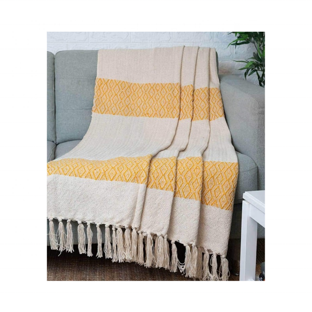 Yellow Beige Warm Slub Yarn 50x70in High GSM Build Handloom Mark India For Buyers Wanting Natural Warm Decorative Lounge Throw