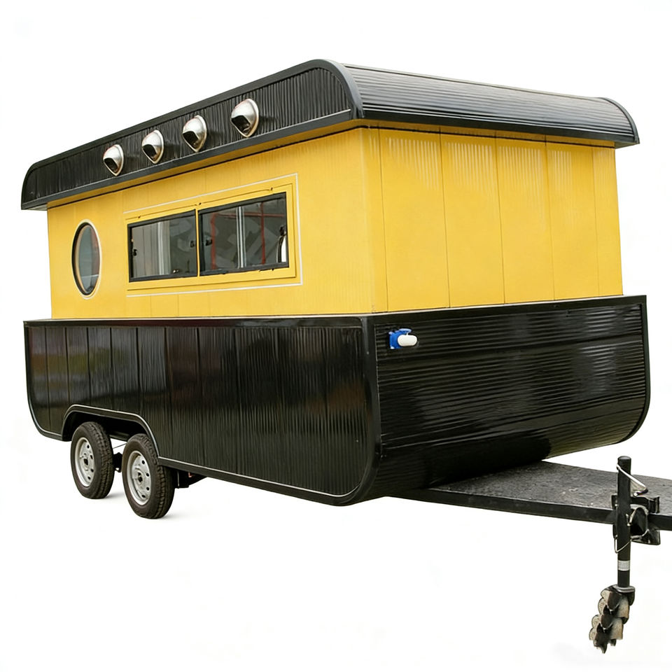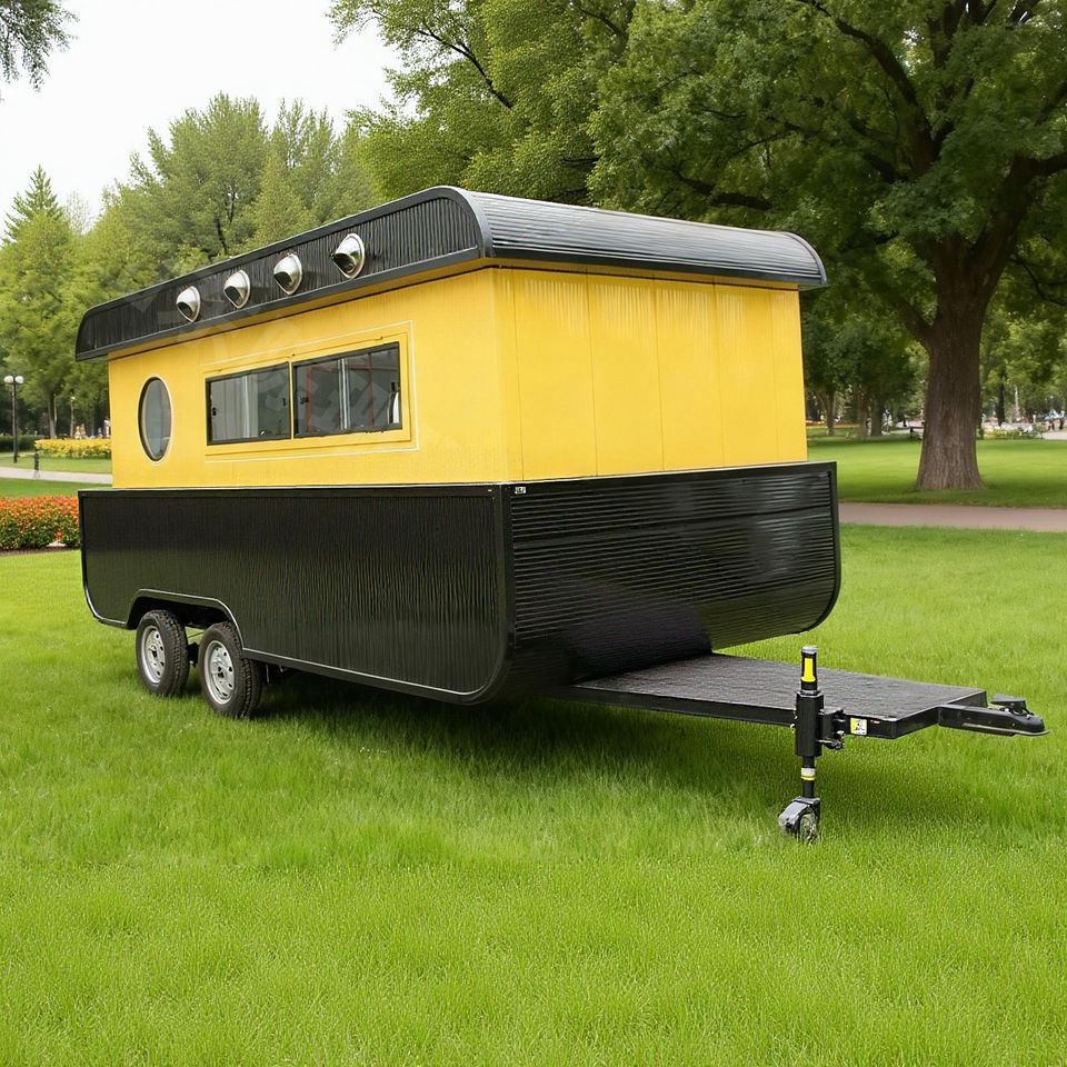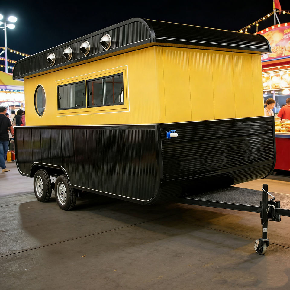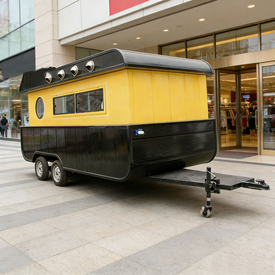 Yellow Black Vintage Trailer Food Cart Retro Style Heavy Duty for Fast Food Drink Snack Outdoor Catering Park