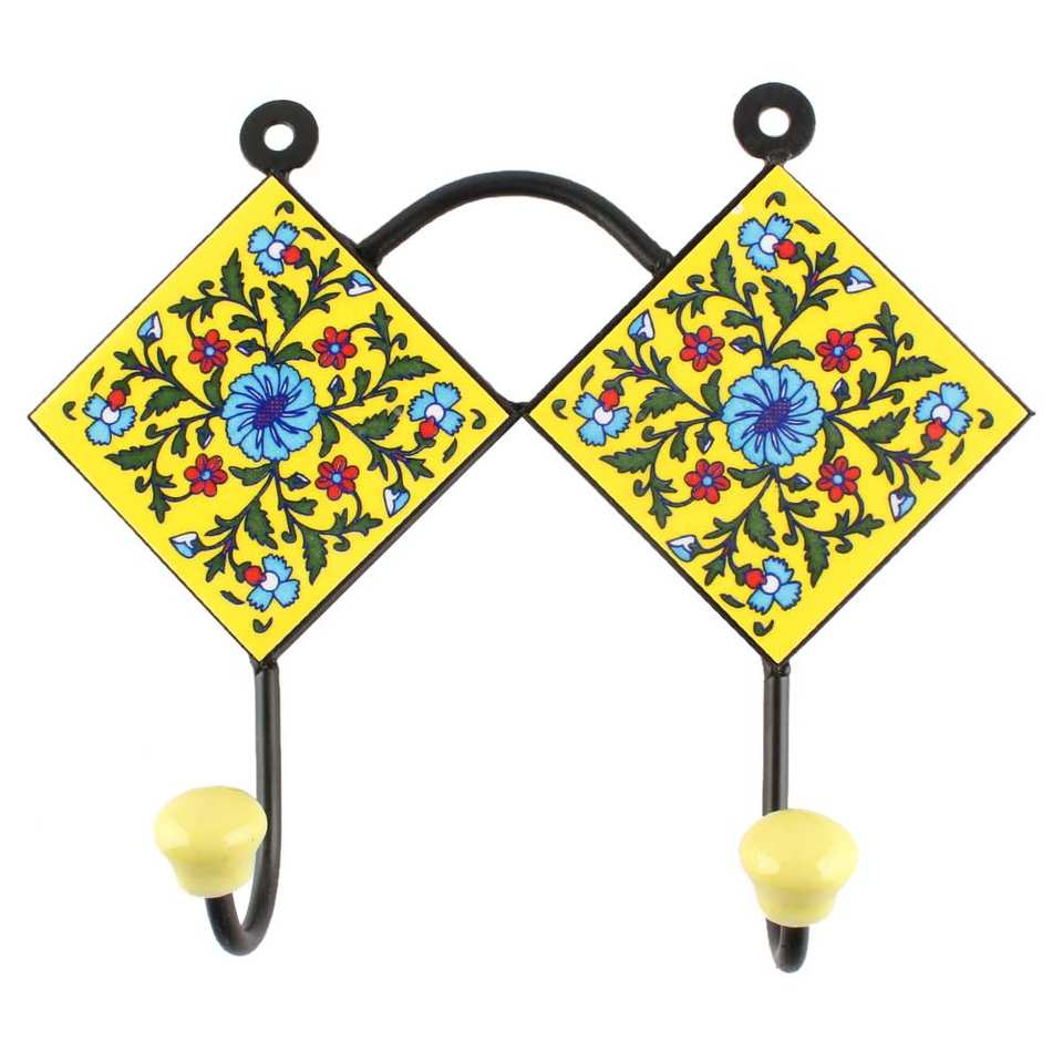 Yellow Ceramic Leaf Flower Best Price and Quality Bathroom Towel Hook Coat Wall Holders Coat Hanger Durable Indian Craft