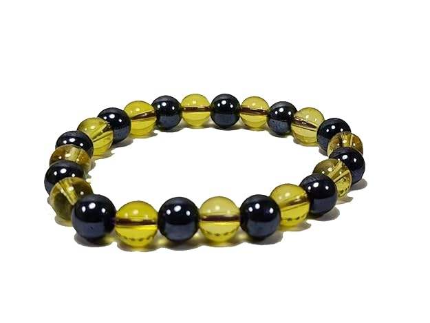 Yellow Citrine & Hematite Round Beads Crystal Bracelet Fashion Jewelry for Men & Women Feng Shui Style Energy-Enhancing Gift