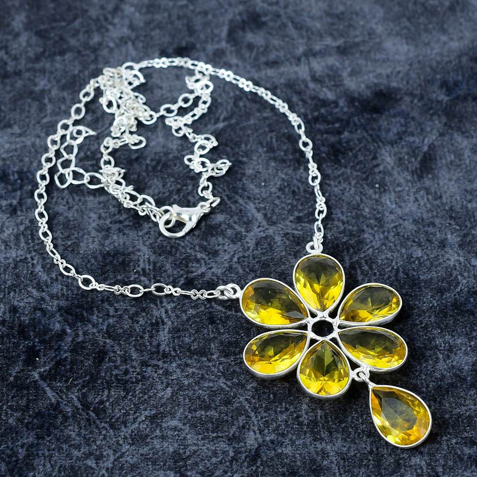 Yellow Citrine Pear Shape Gemstone 925 Silver Plated Necklace For Women Anniversary Chain Necklace Dainty Necklace Gifts For Her