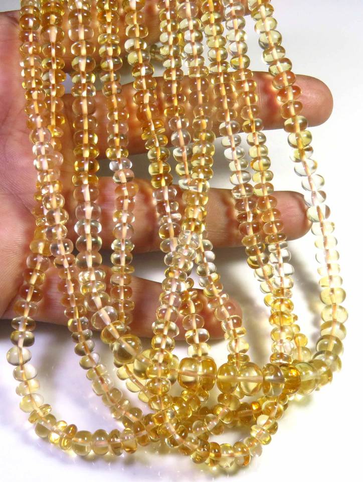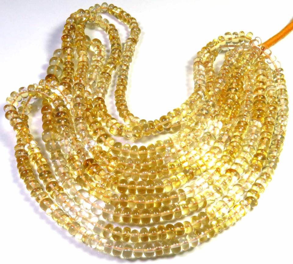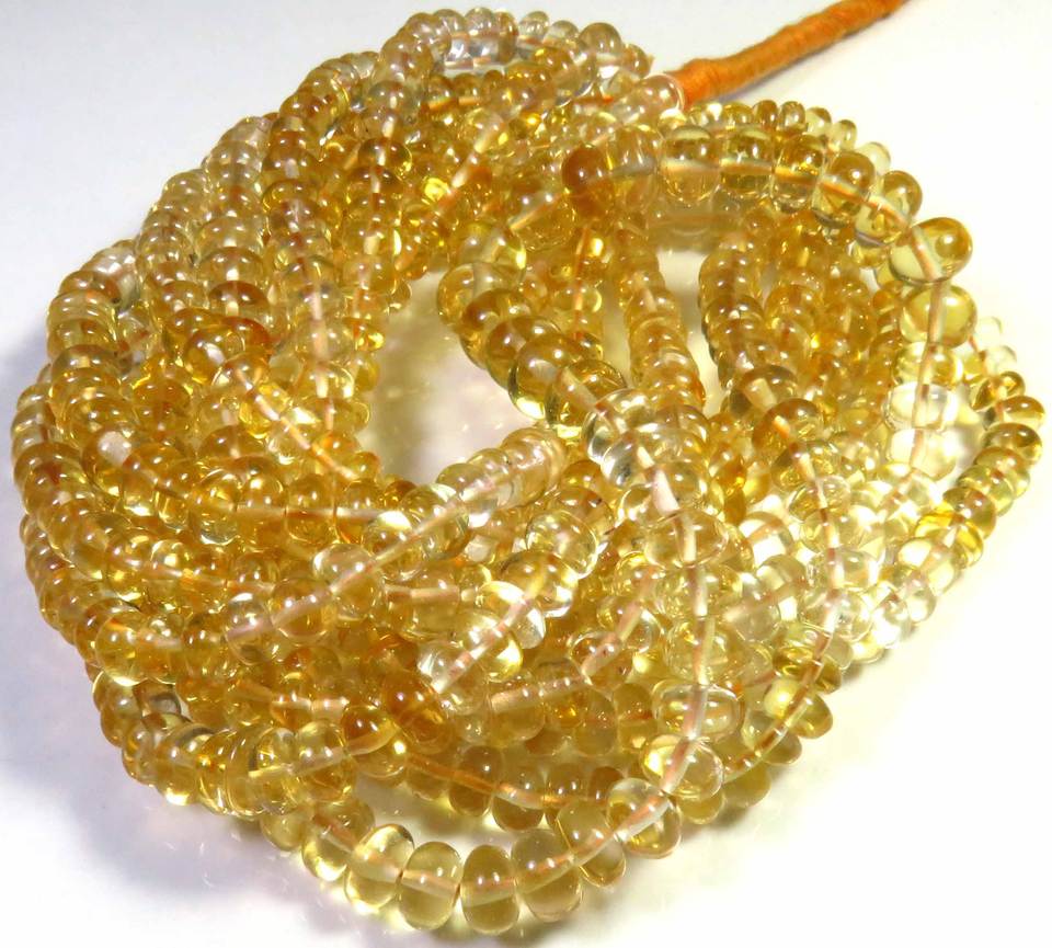 Yellow Citrine Rondelle Shape Gemstones Beads 16" Strand High Quality Natural Citrine Beads 5-6mm Smooth Polished Loose Citrine