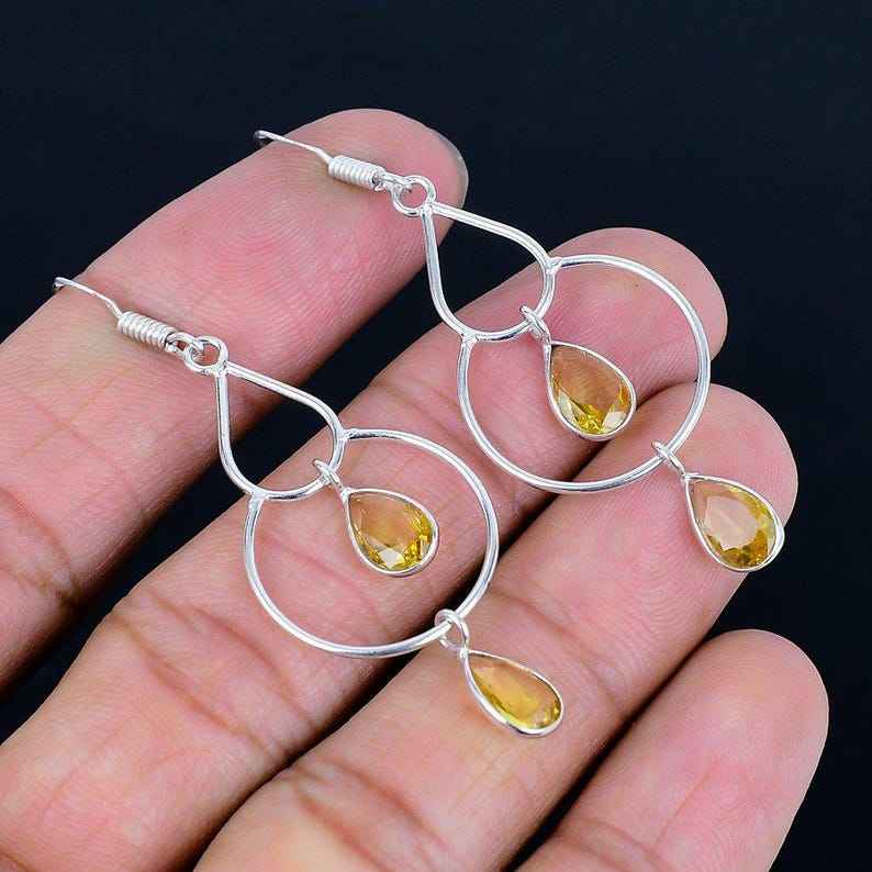 Trendy Style Yellow Citrine Stone Drop Earrings 925 Sterling Silver Pear Cut Gemstone for Weddings Sale Wholesale Price