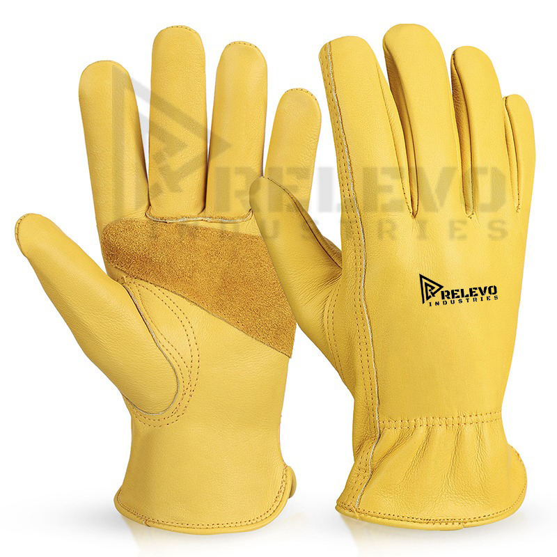 Yellow Color Cow Hide Premium Leather Garden Gloves Yellow Heavy Duty Thorn Proof Work Gloves for All-Weather Outdoor Gardening