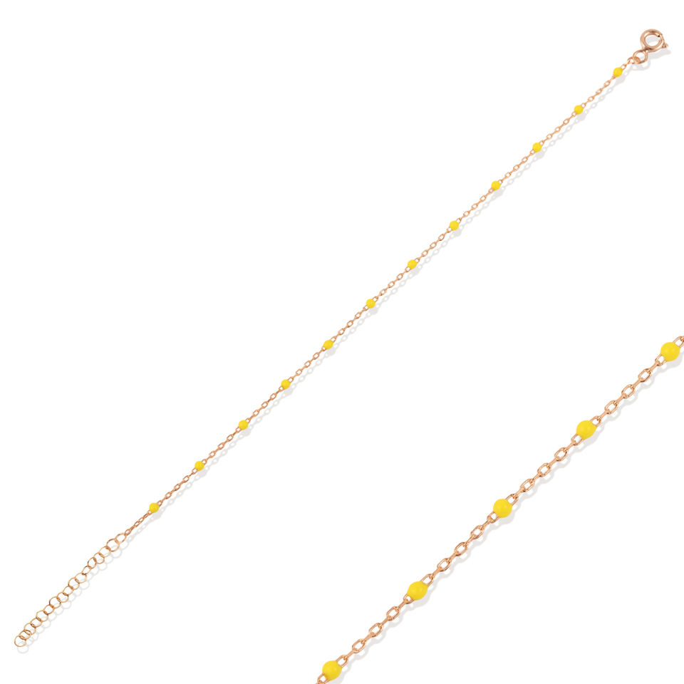 Yellow Color Enamel Design Gold Plated Rhodium Plated Chain Bracelet Turkish Handcrafted 925 Sterling Silver Jewelry