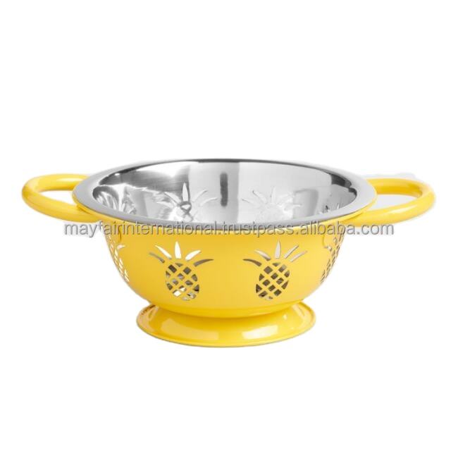 Yellow Pineapple Cutting Design Deep Colander Fruit Vegetable Drainer Stainless Steel Handle Eco-Friendly Metal Construction