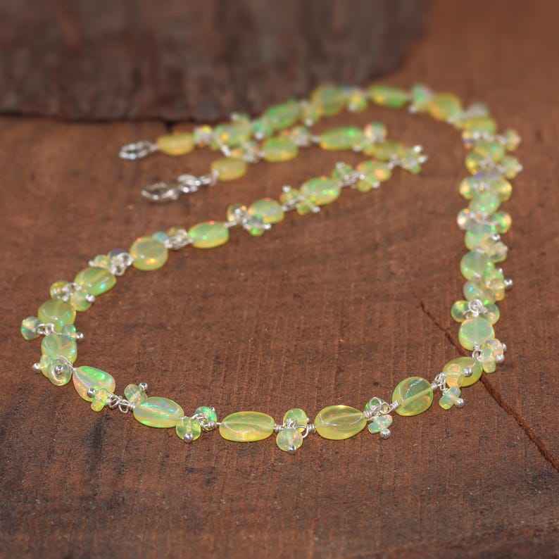 Keyword:Minimalist Fire Opal Beads Necklace 925 Silver