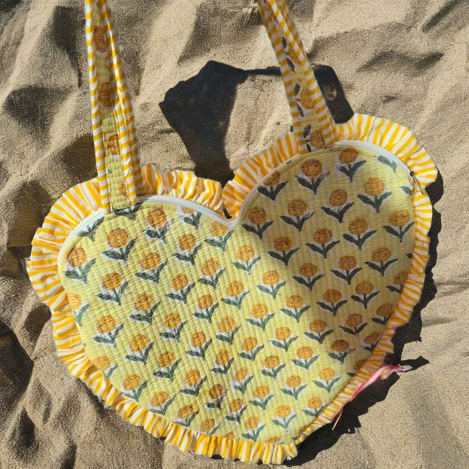 Yellow Heart Design Handbags Valentine's Tote Bags Multifunction Cute Picnic Bag Cotton Customized Storage Summer Autumn Open