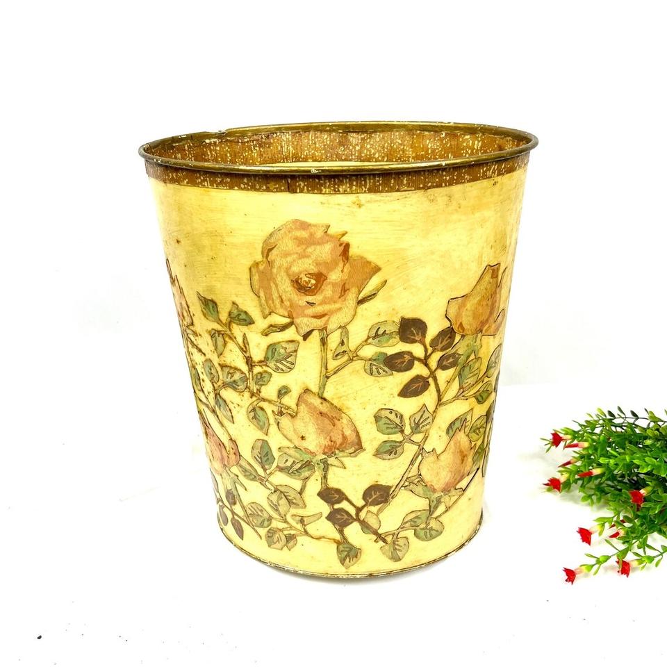 Yellow Floral Metal Kitchen Waste Bin Trash Can for Bathroom Home Office Kitchen Restaurant Hotel Room Waste Paper Garbage Bin