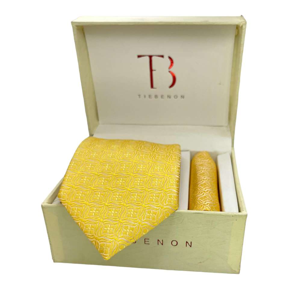 Yellow Geometric Printed Self-Tie Handkerchief with Pocket Square Combo Elegant Design for Style and Comfort